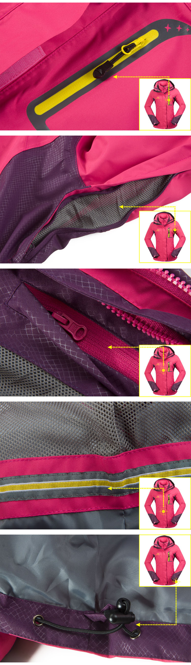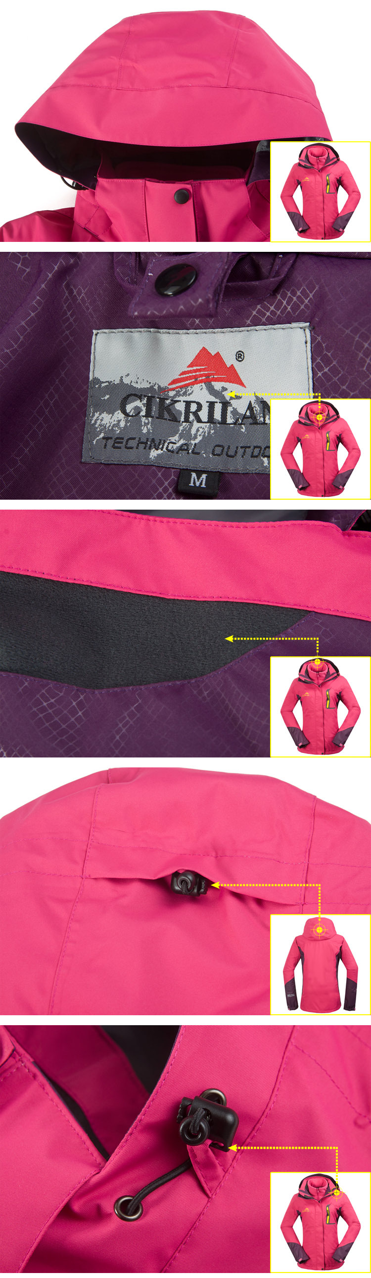 Product Description New Fashion Women's Windbreaker Winter Coat Jacket Outdoors Snow Waterproof Breathable two-in-one Lady Jackets CKL2266